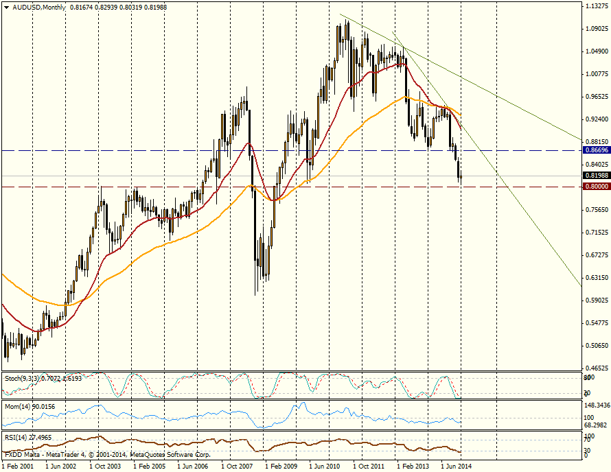 El quiebre del mismo podría desatar una nueva oleada bajista con destino hacia 0.7600 – 0.7690. Por otro lado, en caso de lograr aguantar por encima se podría esperar algún tipo de rebote alcista, pero de permanecer debajo de la línea bajista que se puede ver en el gráfico, las mismas podrían ser limitadas y sin mucho sustento.