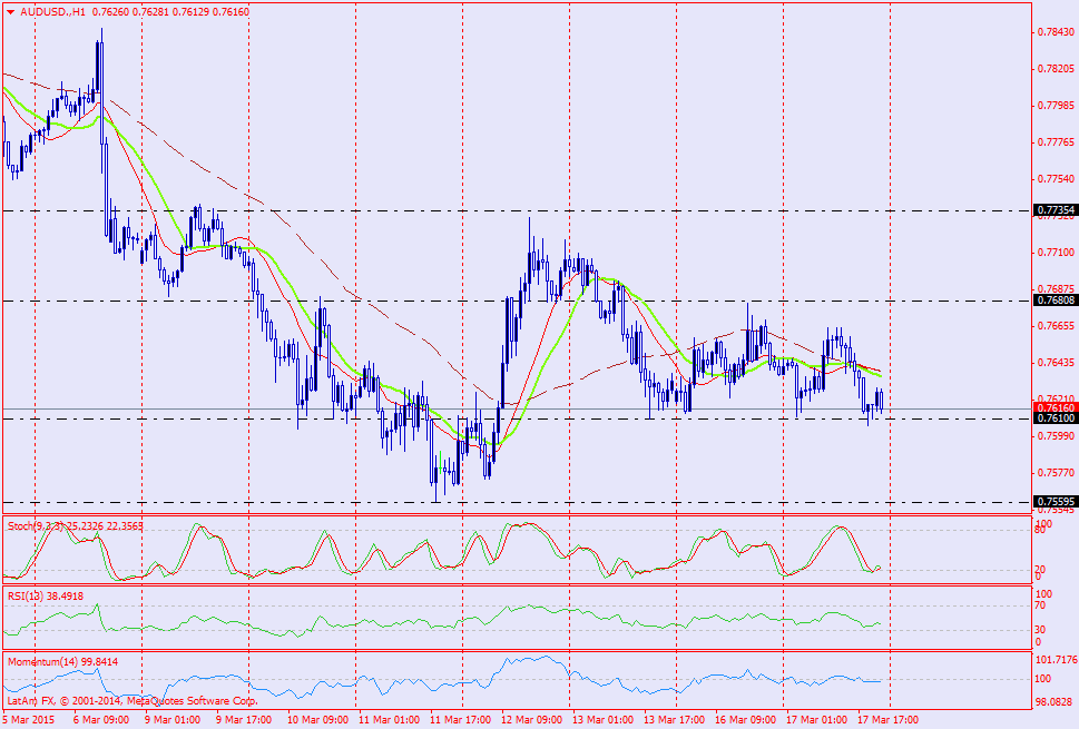 El AUD/USD sigue marcando mínimos descendentes y se mantiene bajo presión, pero por el momento la zona de 0.7610 le esta dando soporte.