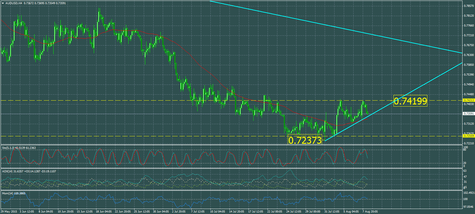 - El quiebre de la línea mencionada, implicará nuevas caídas con zonas de objetivo en 0,7300, 0,7270, y el nivel mínimo mencionado en 0,7235.