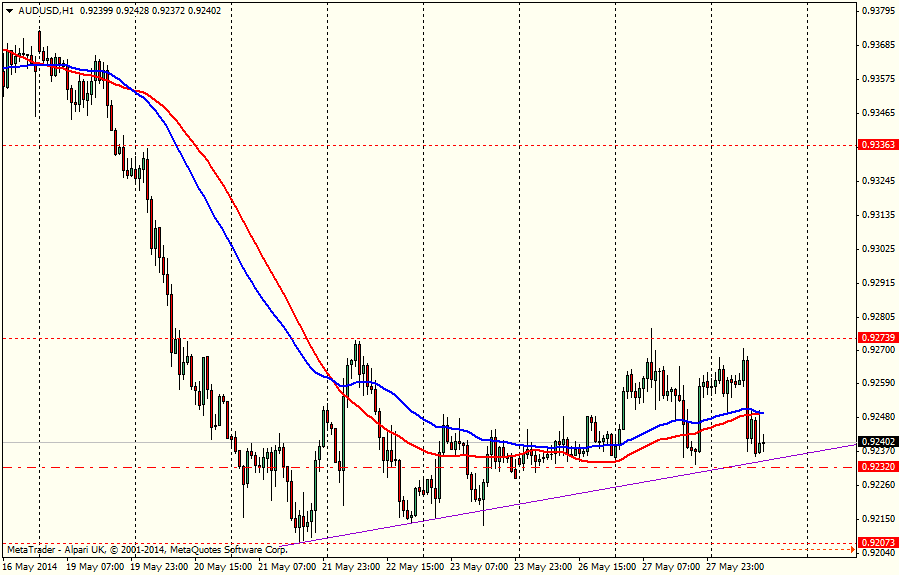 El AUD/USD cerró finalmente sin cambios el martes y hoy miércoles 28 de mayo se muestra sin grandes cambios pero manteniéndose en un rango (con una vigencia de ya de más de 30 horas) con el precio moviéndose entre 0.9230 y 0.9270. La salida de este rango podría ofrecer oportunidades en el corto plazo.