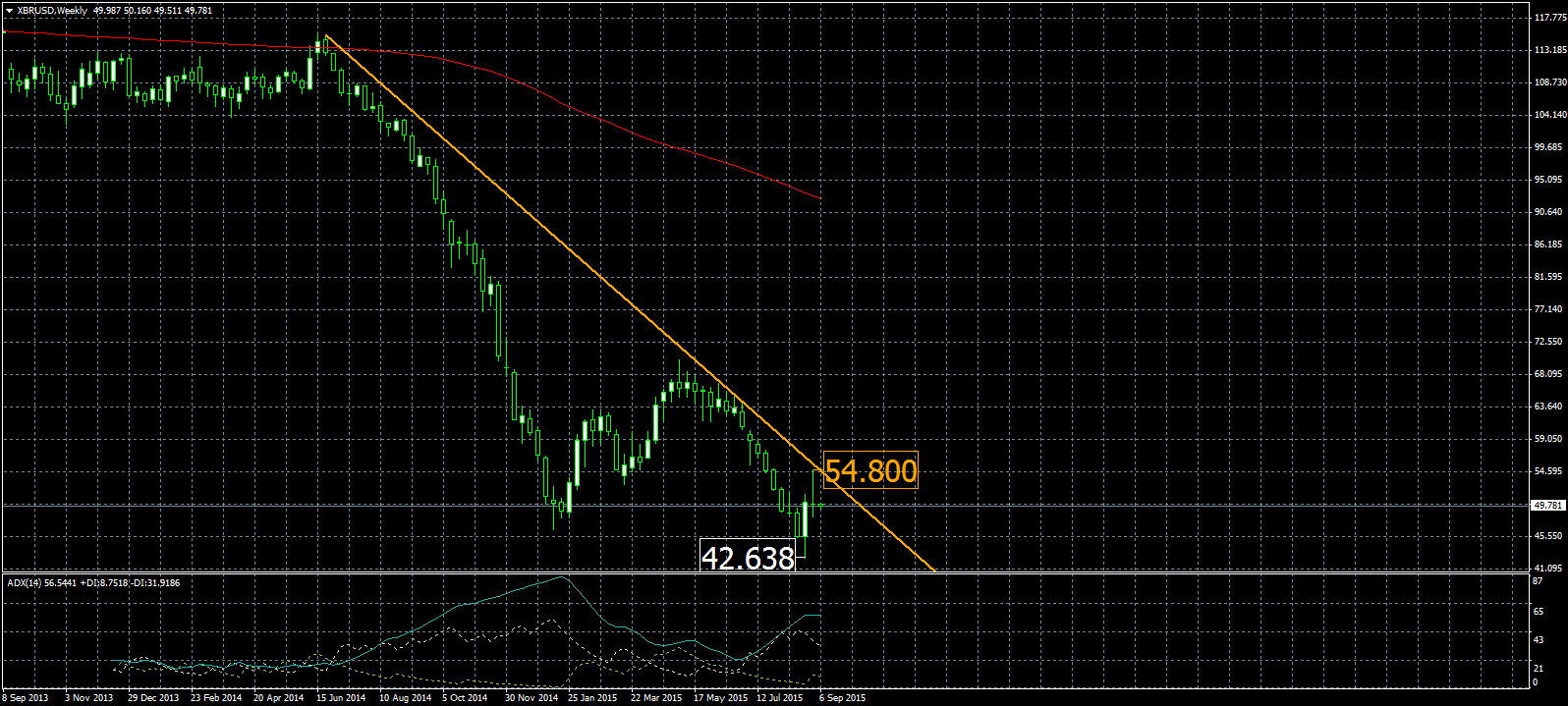 - En este escenario, y mientras se mantenga vigente la línea directriz (en color anaranjado), la tendencia permanecerá en sentido bajista. Y desde los niveles de precio actuales, esperamos una nueva caída del Brent.