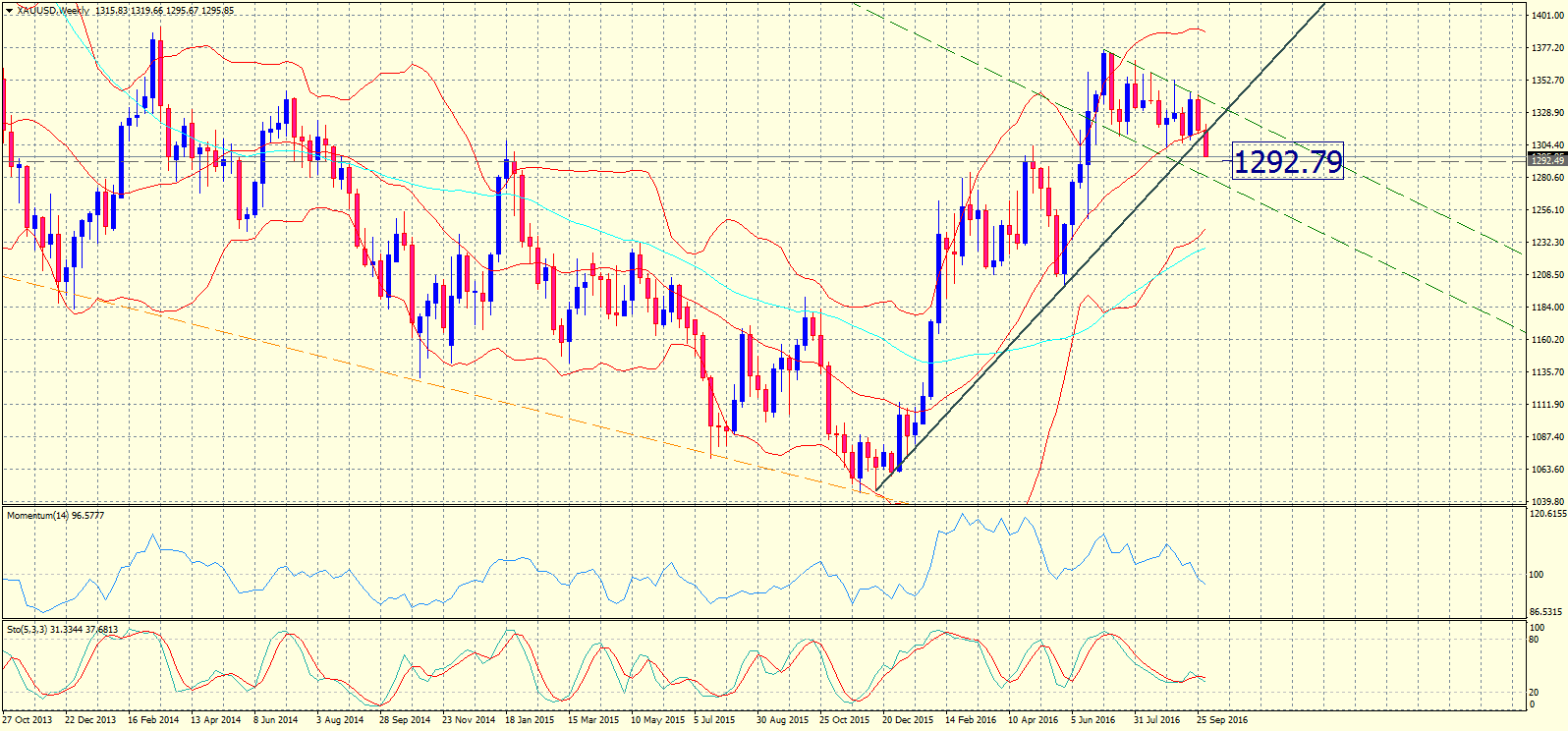- El Oro cae velozmente en estos momentos luego de quebrar la fuerte zona de soporte en 1313, nivel donde entre otras cosas se ubica la línea de tendencia alcista semanal.