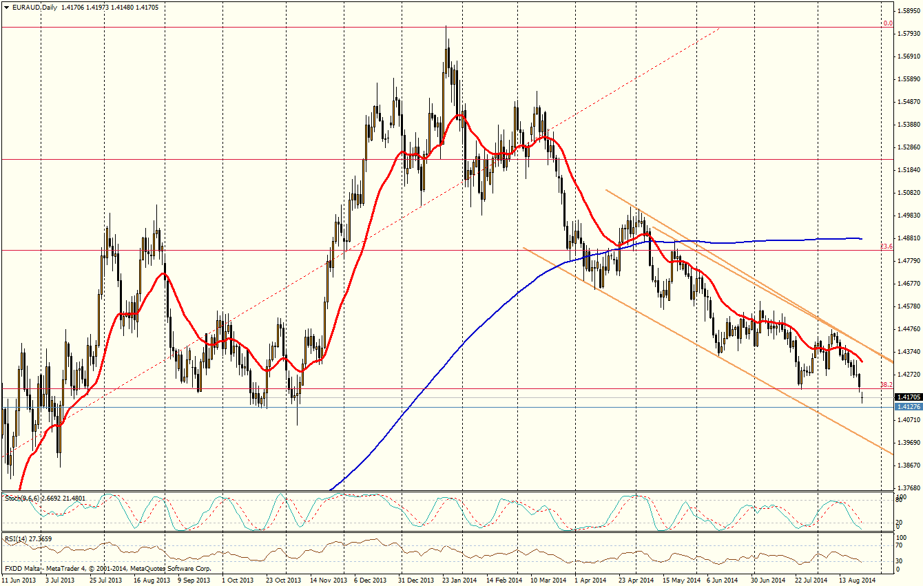 El EUR/AUD comenzó la semana operando en mínimos desde noviembre y por debajo del soporte importante de 1.4200 y debajo del retroceso de Fibonacci del 38,2%, de rally alcista que comenzó en el 2012 y terminó en el 2013.