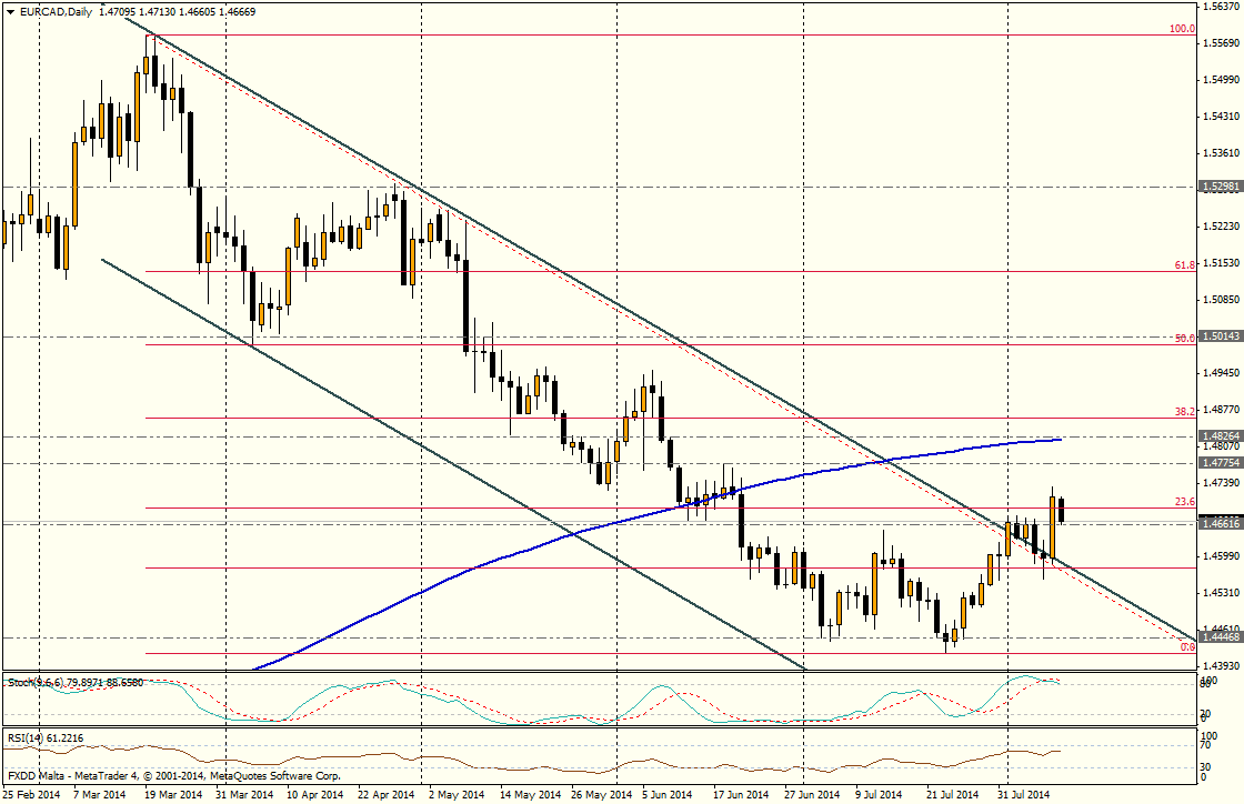 A principios de agosto quebró una línea bajista, aunque las subas que le siguieron fueron limtiadas. El viernes pasado, la debilidad del dólar de Canadá impuso al par por encima de 1.4660 ganando más soporte para subir.