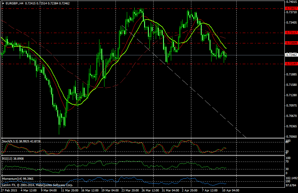 El EUR/GBP esta por terminar la semana con una caída, que encontró soporte en la zona de 0.7220. Actualmente está consolidando, con los indicadores sin dar señales claras.