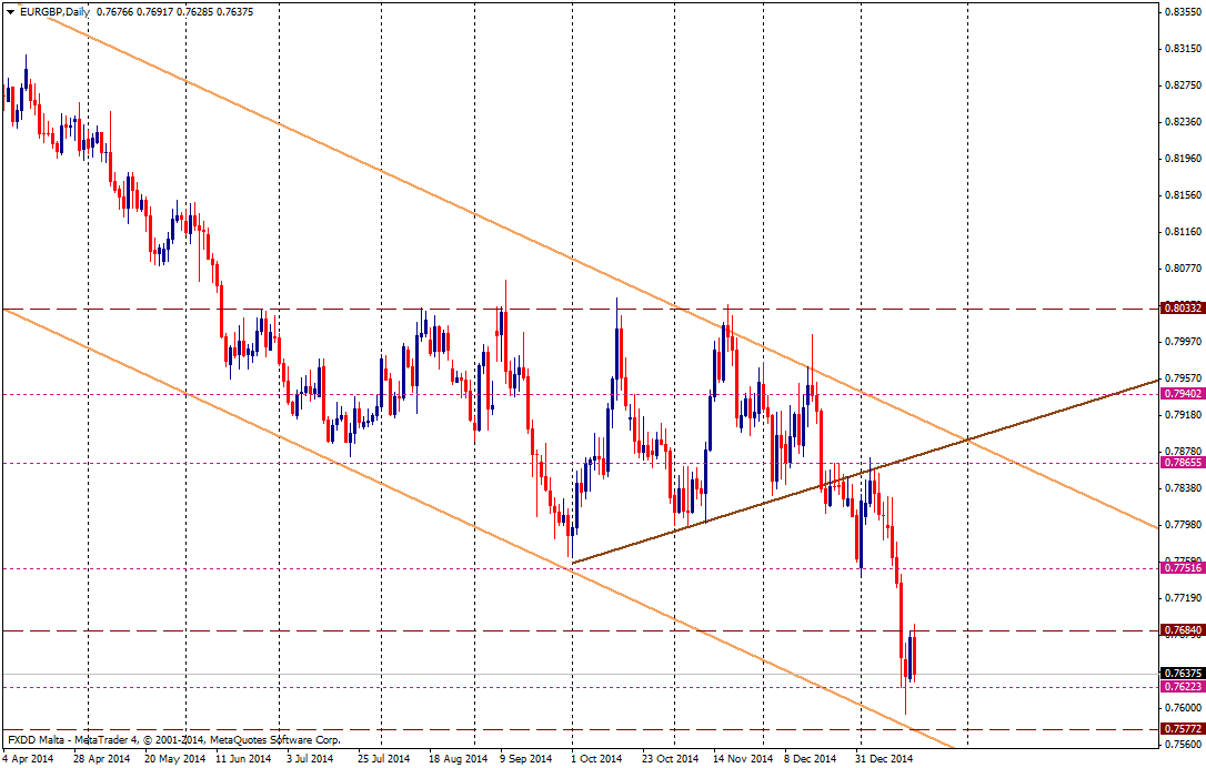 - La decisión del banco central de Suiza (abandono del piso del EUR/CHF) generó una aceleración bajista del EUR/GBP, que lo llevó a cerca de límites inferiores al canal bajista, que ya tienen más de un año de vigencia.