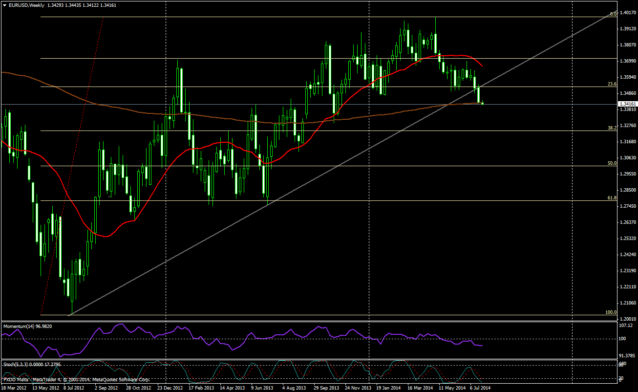 El EUR/USD confirmó el quiebre de una línea de tendencia de mediano plazo y se está aproximando a 1.3400. El análisis técnico indica que la debilidad del euro debería de continuar.