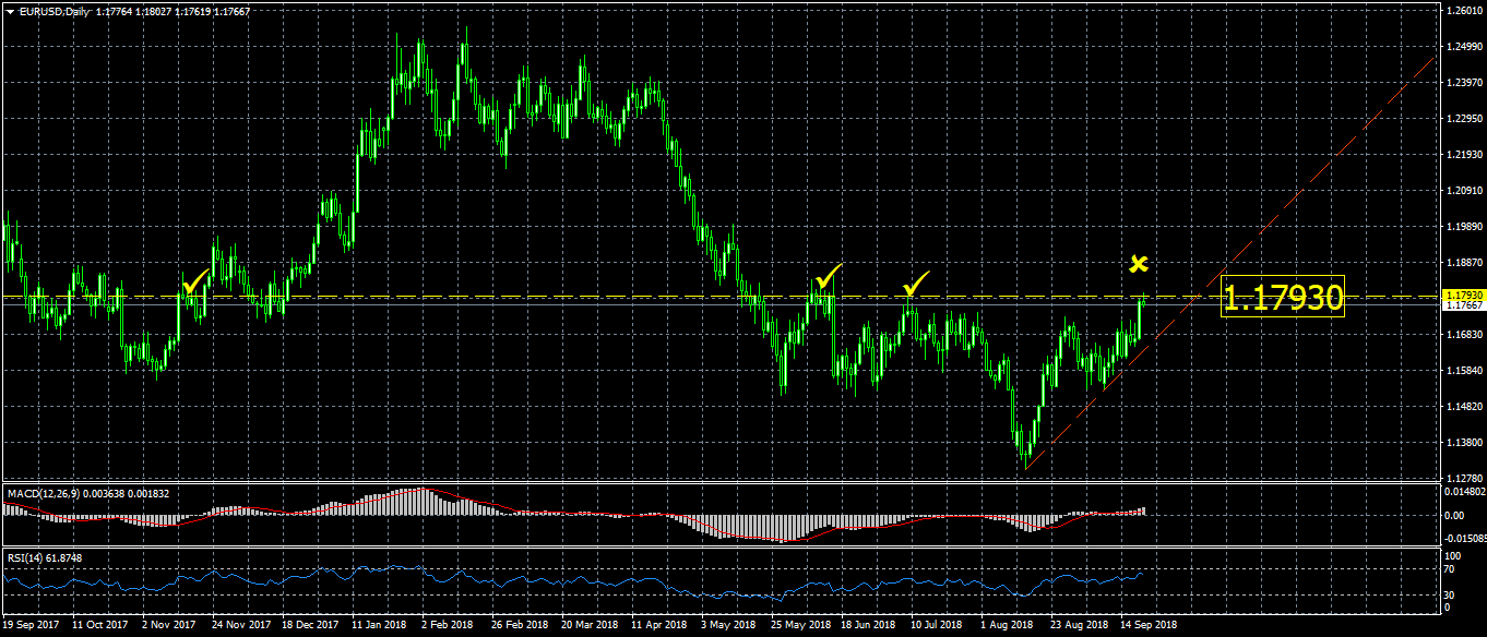 • Fue así como el Euro rompió la zona de equilibrio entre 1,1715/30, y prolongó sus ganancias hasta la zona «clave» entre 1,1770, y 1,1805.