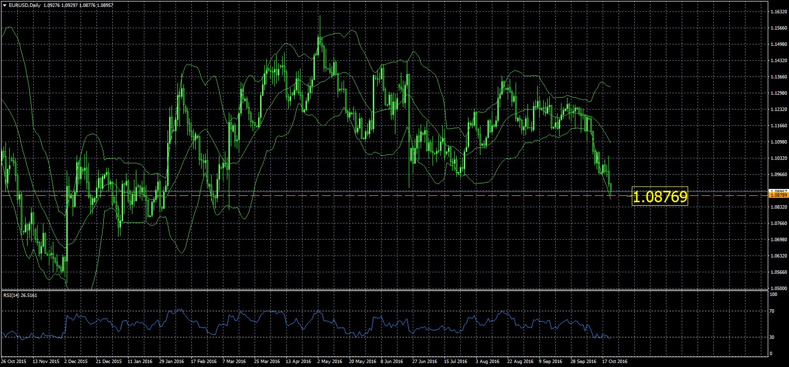 - La divisa europea pierde su valor tras el discurso de Mario Draghi ayer jueves tras la reunión del BCE (Ver informe). Luego de reaccionar al alza y tocar un máximo cerca de 1,1040, comenzó un recorrido a la baja que extiende en la mañana del viernes tocando 1,0877 con la formación de su nivel mínimo hasta el momento. Nive del precio que no visitaba desde inicios de Septiembre.
