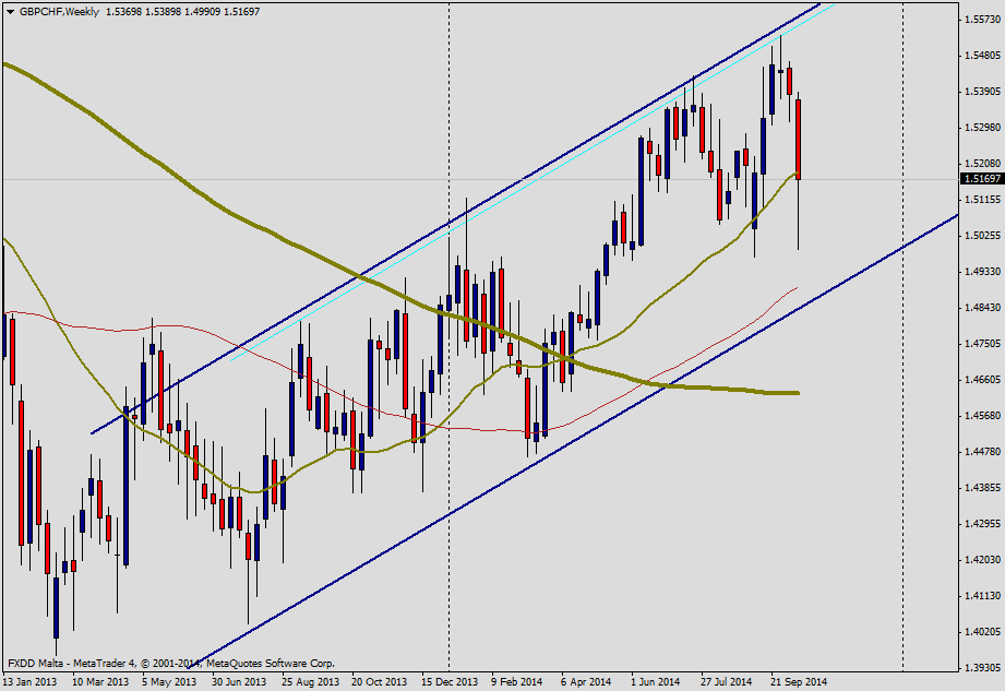 La libra, de las peores monedas de la semana, se encamina a tener la segunda caída semanal en forma consecutiva contra el franco suizo (CHF), continuando de esta forma con el retroceso que comenzó luego de que el GBP/CHF se aproximará al límite superior del canal alcista que se puede ver en el gráfico.