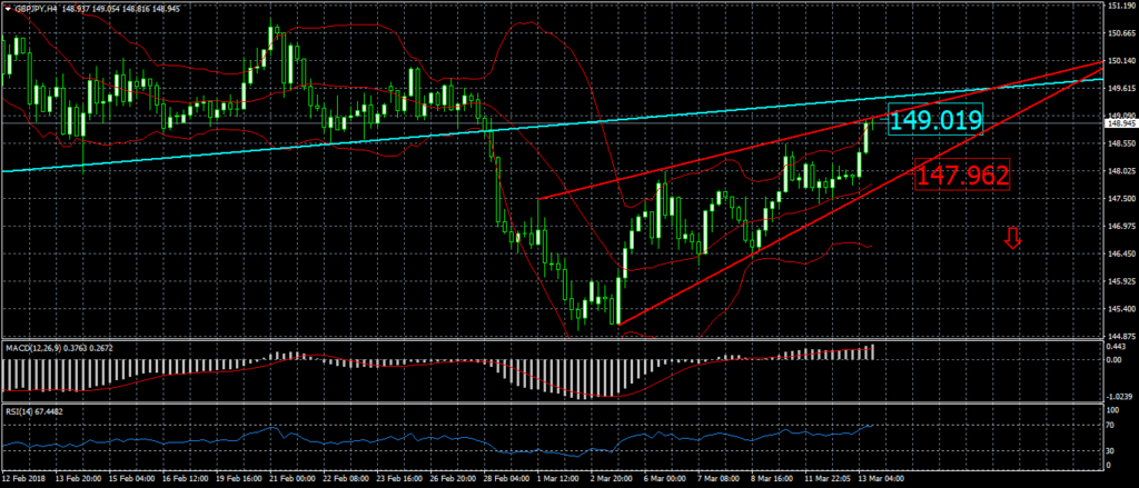 • El GBP/JPY rompió la fuerte zona de soporte que se extiende entre 148,80 y 149,10 hace unos días, y luego de encontrar zona de detención en 145,10, comenzó a escalar posiciones a modo de escalera en lo que podría ser una «cuña alcista»