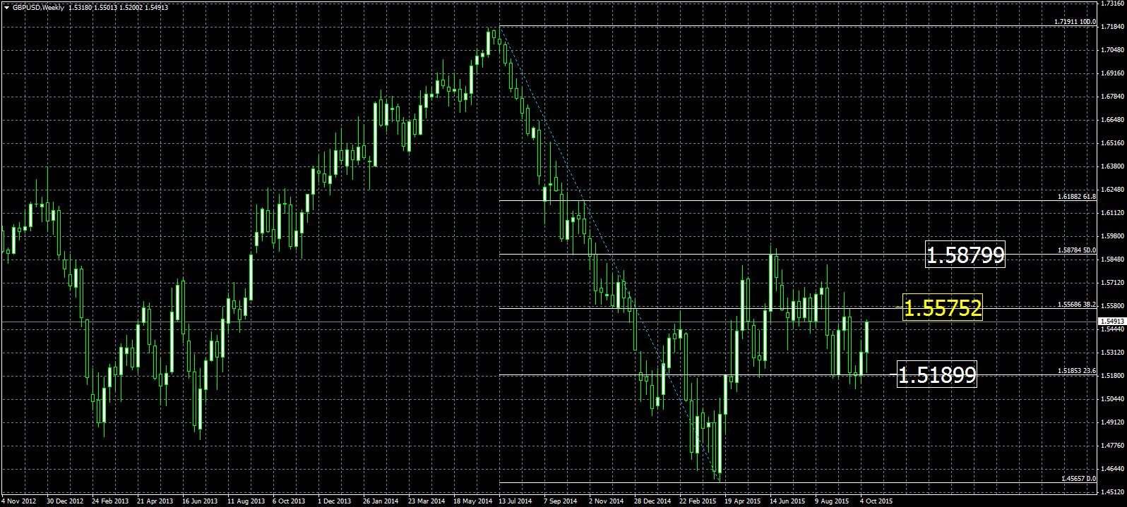 - En 1,5575 fijamos la próxima zona de resistencia a considerar antes del nivel que contiene la lateralización en 1,5880 como podemos apreciar en gráficos semanales. Antes 1,5520, y luego 1,5640 y 1,5730 serán los niveles de detención.