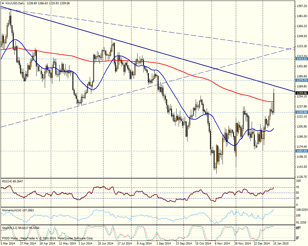 La cotización del oro se disparó con la decisión del Banco Nacional Suizo (remoción del piso del EUR/CHF y recorte en la tasa de interés) y subió hasta $1.265.