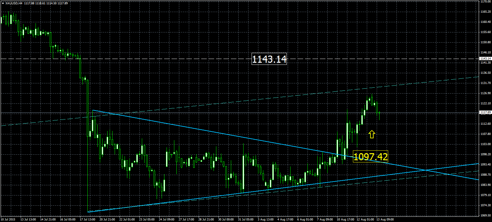 - El metal dorado gana posiciones estos últimos días, quebrando la zona de 1100 dólares la onza, y dejando sin validez el patrón de triángulo en sesión de 4 horas.