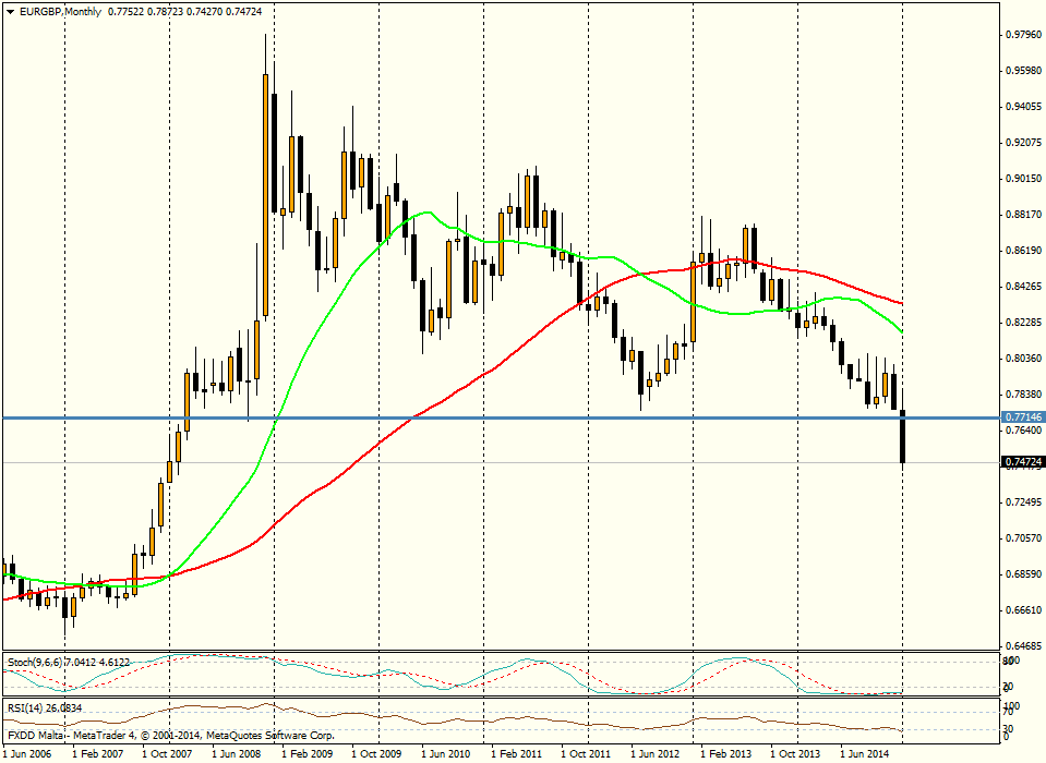 - El EUR/GBP como se puede ver en el gráfico está quebrando un soporte de largo plazo, que abre las puertas a un descenso mayor en el mediano plazo, con un objetivo potencial en la zona de 0.7000.