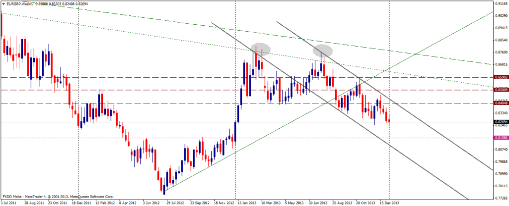 El EUR/GBP tuvo un particular año en el 2013 en donde subió bruscamente en las primeras semanas (llegando hasta 0,8810), luego corrigió, regresó a los máximos y en la segunda mitad emprendió un retroceso que aún continúa. El retroceso del par se dio desde niveles cercanos a una línea de tendencia bajista de largo plazo. […]
