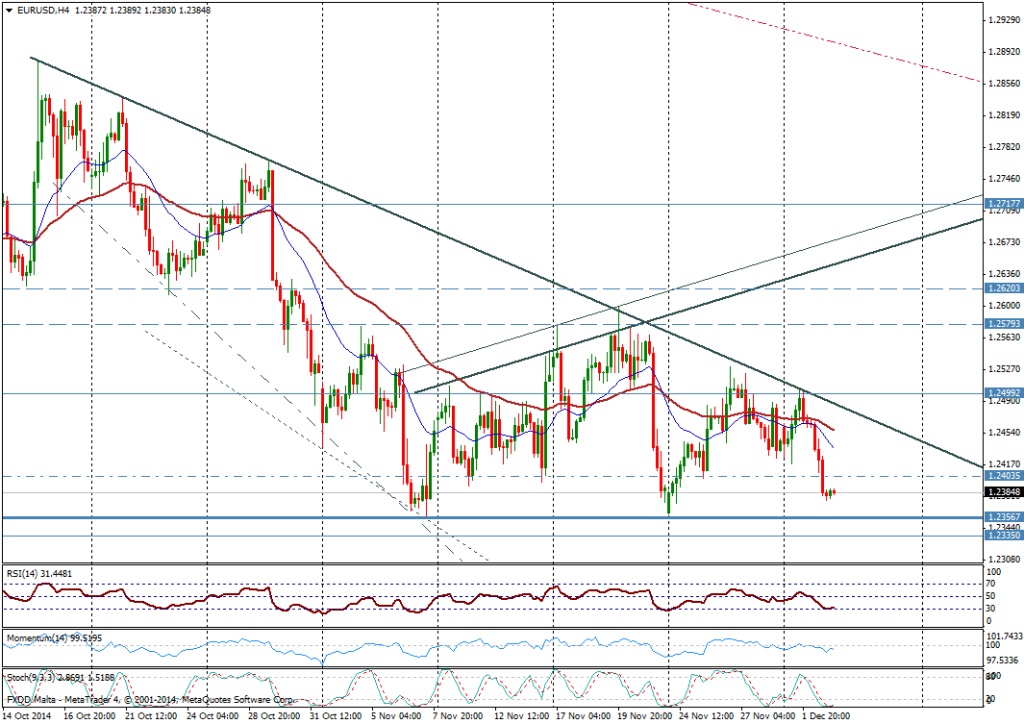 EUR/USD (4 horas): presionando contra los mínimos del 2014