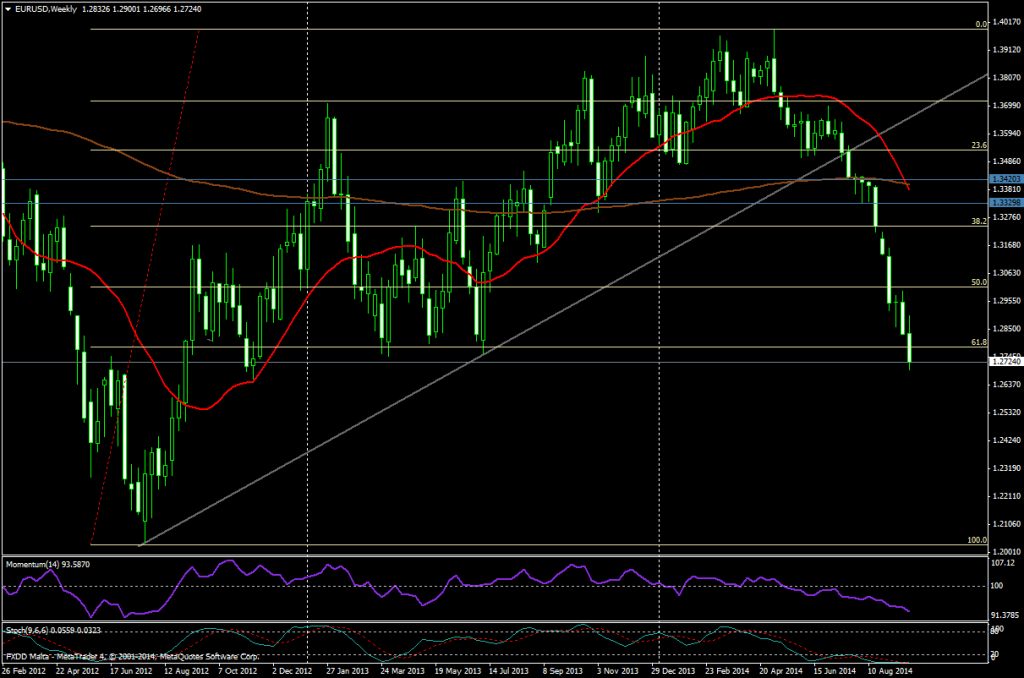 El EUR/USD sigue sin poder levantar la cabeza y continúan los recorridos en línea con la tendencia dominante. Entre lo más importantes de los últimos días, es que el precio quebró los mínimos del 2013 y se está consolidando por debajo de 1.2740. Esto ratifica la debilidad y sigue dejando las puertas abiertas a más […]