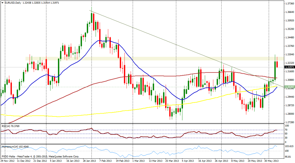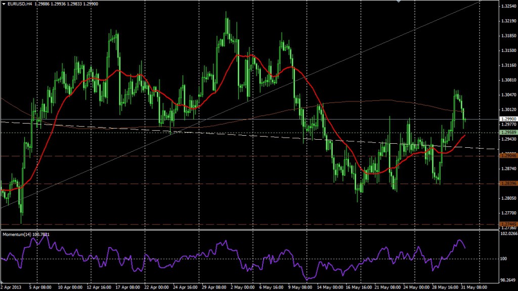 El EUR/USD está subiendo marginalmente el lunes pese al reporte de actividad PMI de mayo, que superó las expectativas. De todas formas el euro no logró impulsarse con fuerza en el mercado. En estos momentos el cruce opera en torno a 1,3000, regresando por debajo de la media móvil de 20 sesiones en el gráfico […]