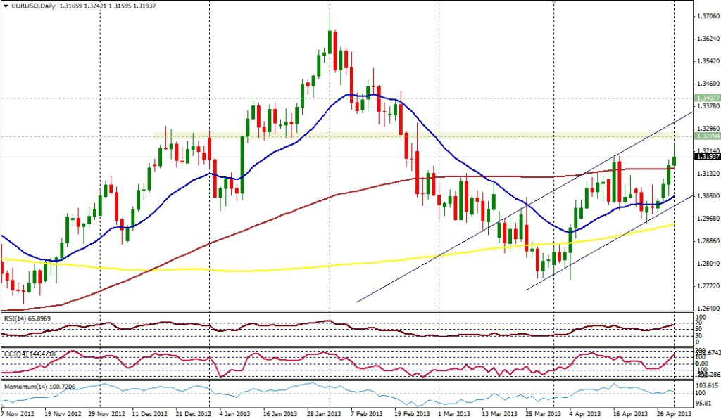 EUR/USD: El euro apunta más alto sobre 1,3100