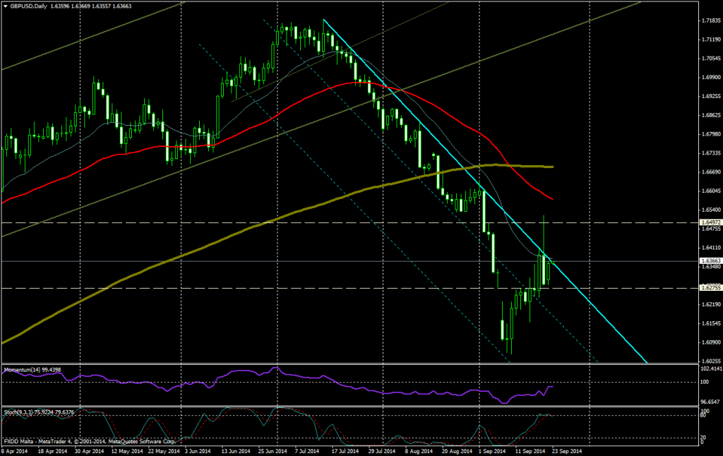 El cruce entre la libra y el dólar continúa moviéndose con una tendencia bajistas. La reciente recuperación ha perdido momento debajo de 1.6300. Con varios reportes económicos por delante del Reino Unido y el referéndum por la independencia de Escocia, la libra podría ir ganando volatilidad en los próximos días. El resultado del referéndum es […]