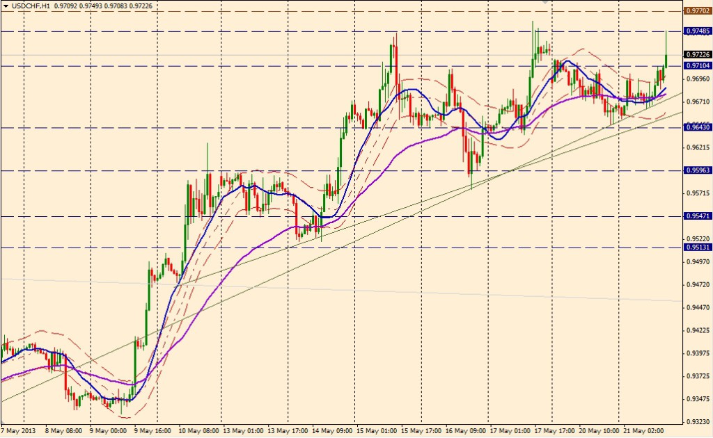 En el día de Bernanke y las minutas de la FOMC que se conocerán en unas horas, el dólar retoma su fuerza alcista frente a las principales monedas en general, y al franco suizo en particular. Luego de quebrar la zona de resistencia en 0,9757, donde encontramos una importante resistencia y el nivel superior de […]