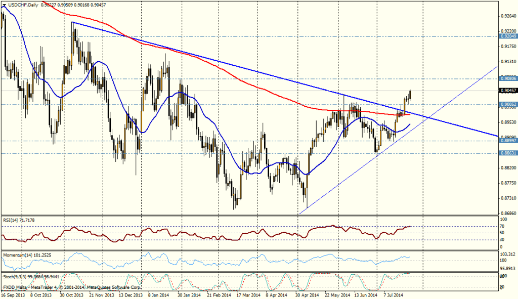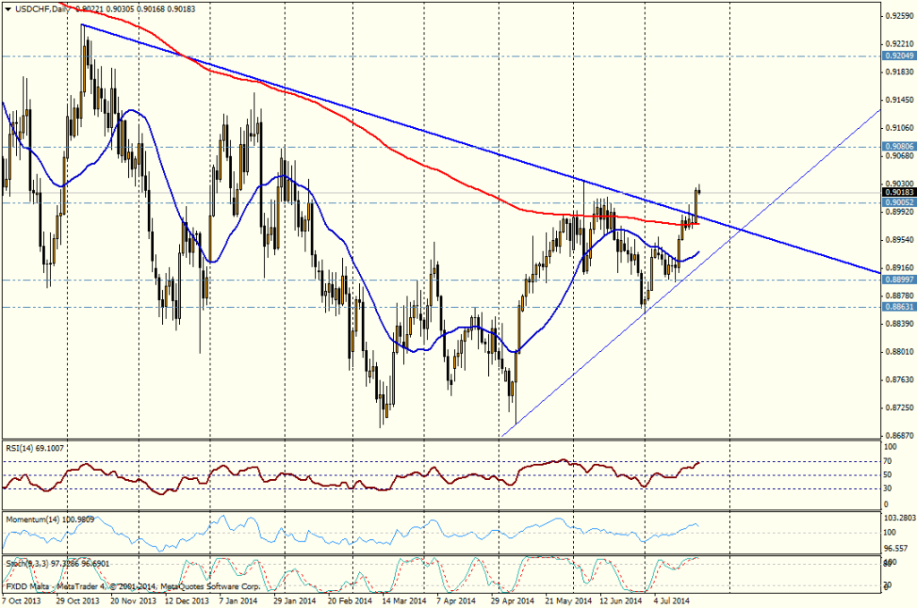 USD/CHF alcista sobre 0.9010