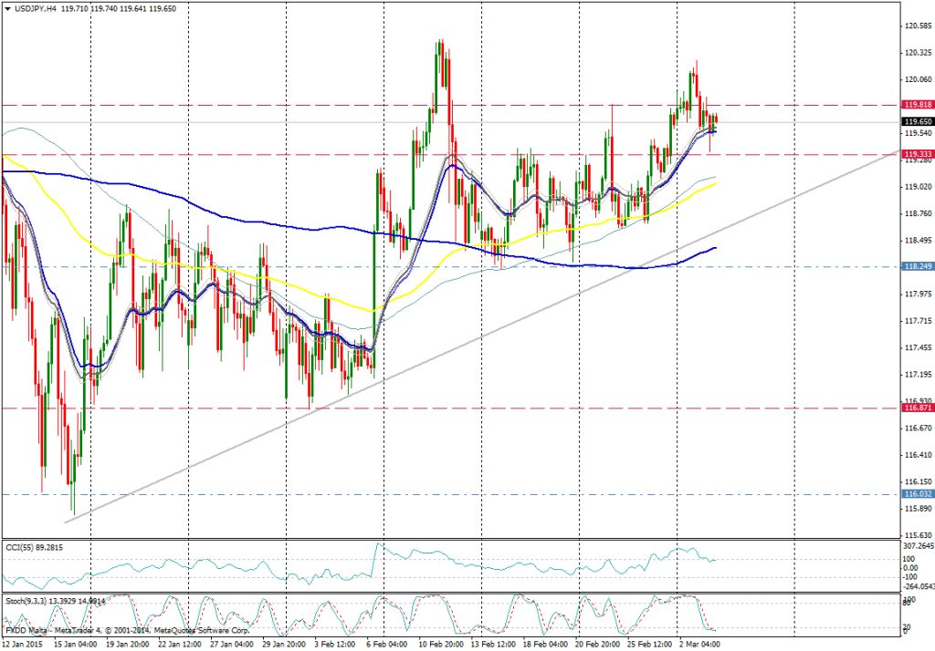 USD/JPY sobre línea alcista, intentando aguantar sobre 120.00