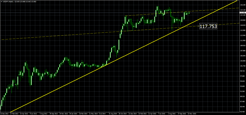 USD/JPY, dentro del triángulo simétrico