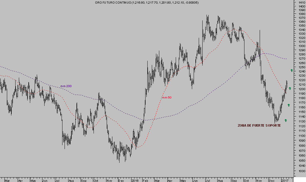El Oro alcanzó suelo en diciembre tras una corrección intensa iniciada en julio, también fecha del techo del T Bond, y desde entonces ha conseguido salir de zona de soporte y fuerte sobreventa, anunciadas en post recuperar casi 100 dólares la onza.