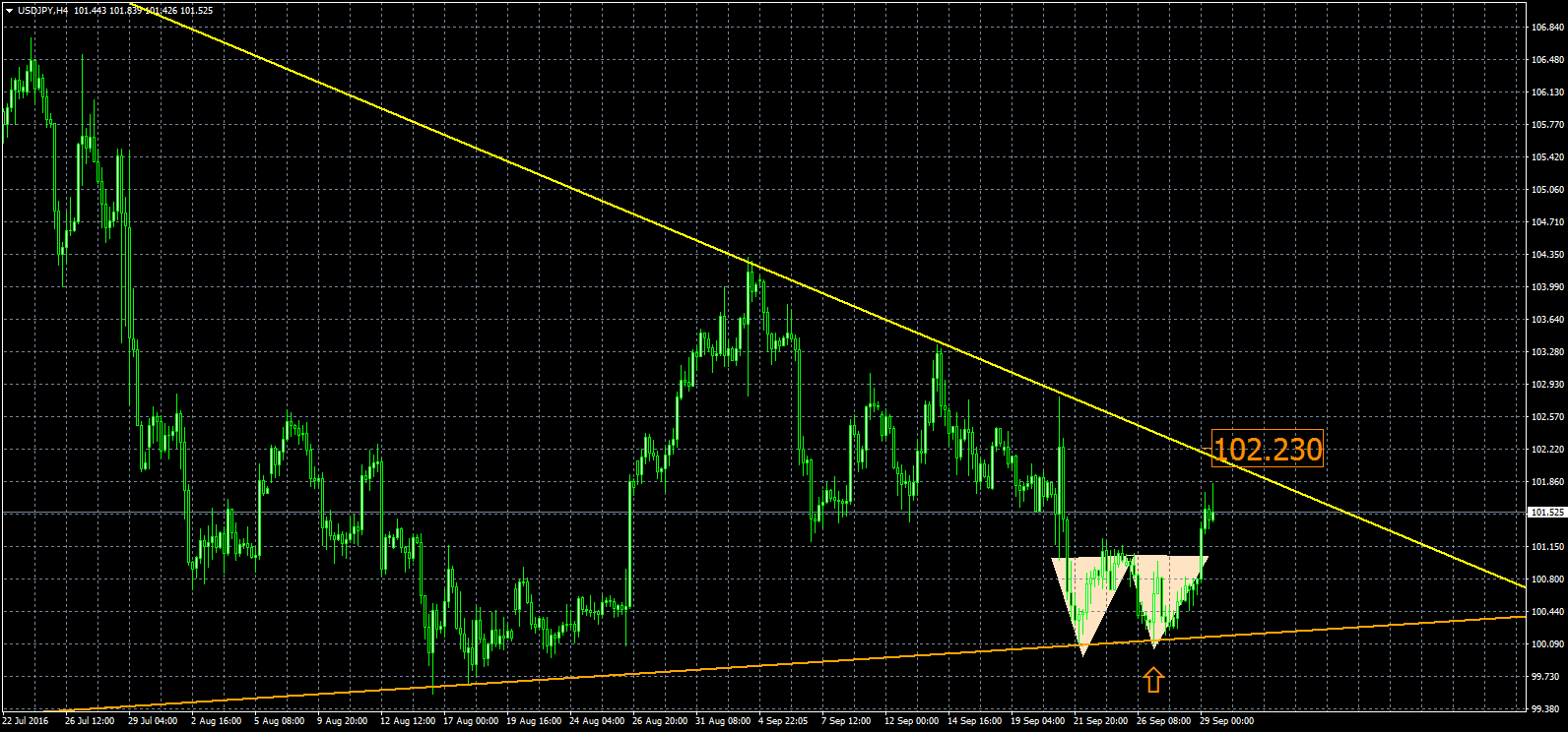 - Como podemos apreciar en 4 horas, las gráficas nos muestran un doble intento de superación de la zona psicológica en 100,00 yenes sin éxito, y un movimiento contrario a partir de la conformación de un Doble Suelo.